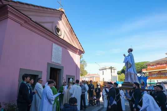 Davanti al piccolo tempio e alla statua del santo, il parroco don Giuseppe Colaci, don Andrea Brutto, direttore della casa Balthazar a La Giustiniana, altri sacerdoti e i molti presenti, tra i quali il presidente del XV municipio di Roma Daniele Torquati, hanno ascoltato la memoria di quel momento essenziale per la nascita della Compagnia di Gesù.