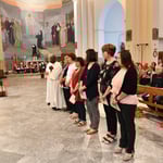 Venerdi 13 dicembre si è vissuta una bellissima serata. Realtà e gruppi operanti nella nostra parrocchia si sono esibiti in 14 canti natalizi per il concerto promosso dal nostro parroco don Giuseppe. I bambini e ragazzi del catechismo e dell’oratorio hanno iniziato il concerto con i canti “ E’ Natale” e “L’attesa”. Essi hanno ricevuto un lungo applauso dal numeroso pubblico presente. Poi sono stati presentati gli altri partecipanti al concerto: il Coro del Sabato sera con il brano “Adeste fideles” in versione rock, I lupetti degli scout con il brano “ Caro Gesù ti scrivo”, anch’essi molto applauditi. C’è stata anche l’esibizione delle suore vietnamite Amanti della Croce che ci hanno allietato con due testi cantati nella loro lingua, “ Noel è Natale” e “Notte celeste “. L’intervento delle suore ha dato un tocco orientale al concerto e ha ricordato che la nascita di Gesù è ormai cantata in tutte le lingue. Poi è stata la volta del gruppo famiglie con “Pace per noi” e del Comitato Feste la Storta con due brani, “ A Betlemme di Giudea” e “ Feliz Navidad”. Per ultimo è stato presentato il coro parrocchiale che anima la S. Messa domenicale delle ore 11,00 e le Messe solenni durante l’anno. Il coro ha presentato 5 canti di carattere natalizio: “Astro del ciel”, ” Adeste Fideles”, “ Fermarono i cieli”, “In notte placida” e “In questa notte splendida”. Al termine tutti i gruppi si sono disposti davanti l’altare, ed hanno cantato tutti insieme il brano più classico di Natale “Tu scendi dalle stelle”. Il brano cantato coralmente da tutti i presenti in cattedrale, ha entusiasmato e coinvolto i partecipanti.