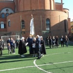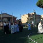 Venerdì 31 maggio scorso, ultimo giorno del mese di maggio, dopo le previste Adorazione eucaristica e santa Messa, un gruppo di fedeli si è trasferito nel giardino parrocchiale dove è stata benedetta la statua di Maria Madre della tenerezza posizionata al centro dello spazio esterno che è stato intitolato: “Giardino del sorriso”. Esso dopo le settimane del Grest, sarà aperto al pubblico, soprattutto alle mamme con bambini piccoli.