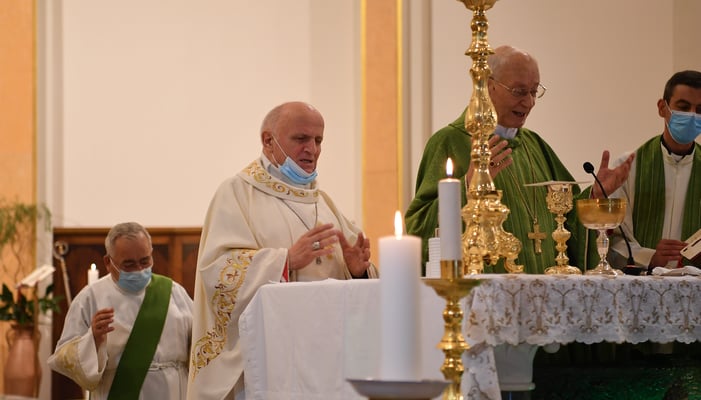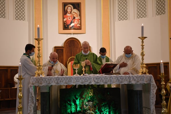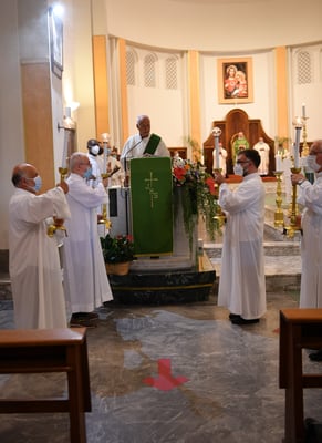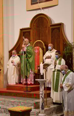 Nella Domenica delle Palme la cattedrale dei Sacri Cuori di Gesù e Maria ha accolto i fedeli nel rispetto delle normative anti-Covid 19. Grazie al servizio di accoglienza e all’allestimento del piazzale davanti alla chiesa molti fedeli hanno potuto partecipare alla celebrazione presieduta dal vescovo Reali. Il presule ha benedetto i rami d’ulivo all’ingresso del tempio accompagnato dal parroco don Giuseppe Colaci e da don Angelo Alavaredo Velasquez, vicario collaboratore.